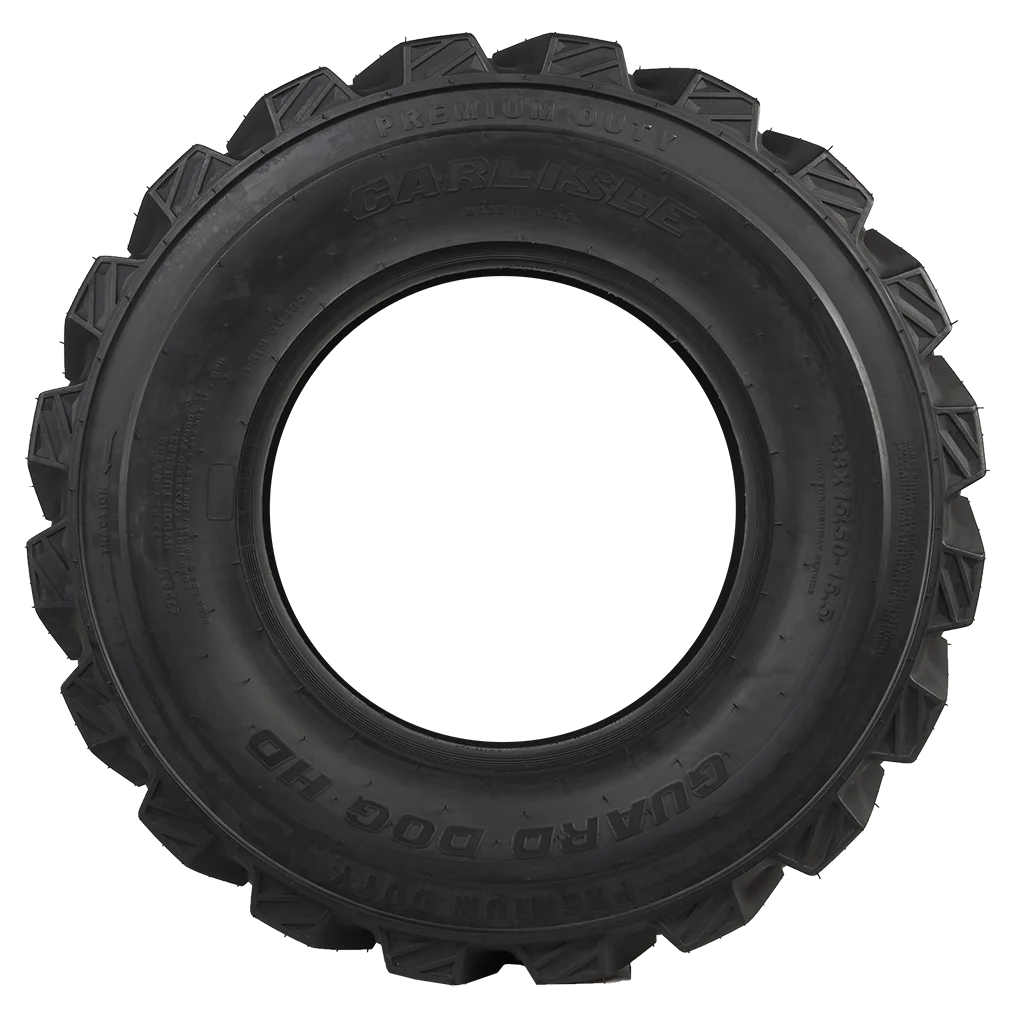 Designed for heavy-duty skid steers, the Guard Dog HD tire has premium tread compounds for tougher service conditions and rigorous construction applications. With its stepped-off outer tread lugs and squared shoulder design, the Guard Dog HD delivers maximum performance and stability on the work site. Made in the USA.