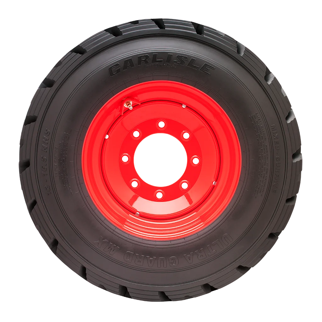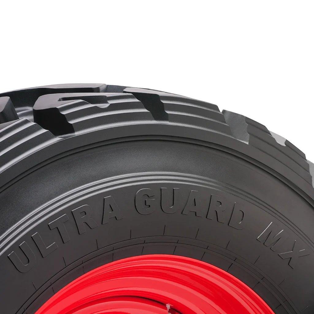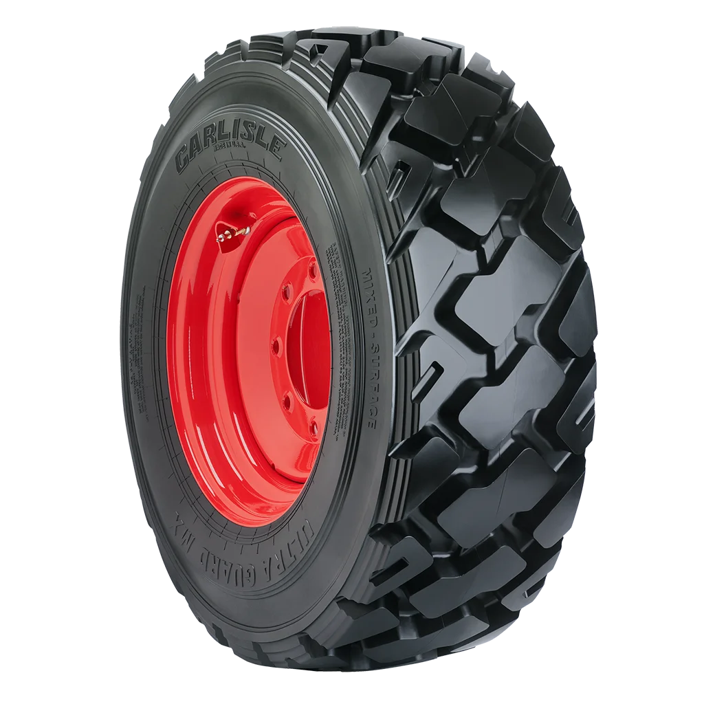 The Ultra Guard MX tire is engineered for Severe Duty skid steer applications. Designed with a unique large angled, non-directional center lug tread design. The Ultra Guard MX delivers increased performance on soft and hard surfaces. Made in the USA.