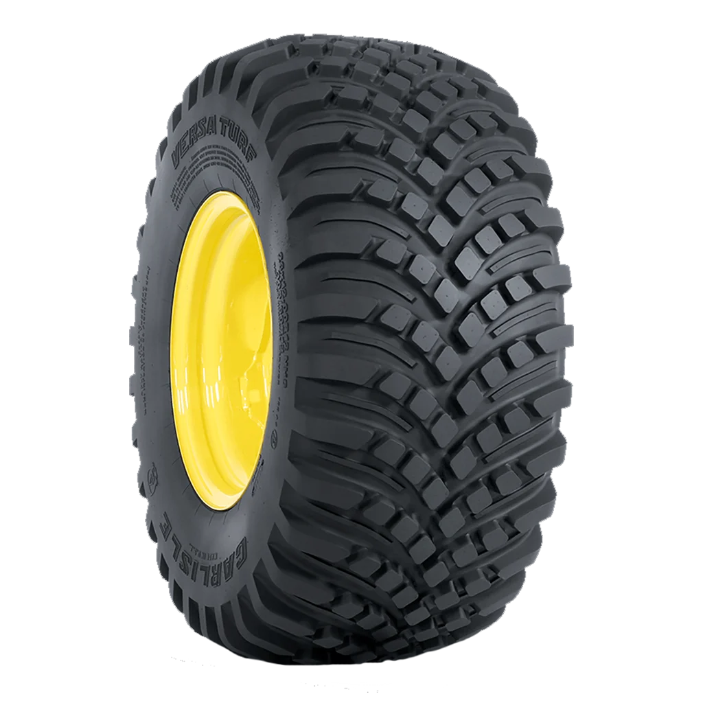 Versa Turf is the turf friendly Radial tire with the traction of an Ag tire. Designed with a radial construction for improved flotation. The Versa Turf reduces Reduce turf disturbance while maximizing traction with its 60% deeper tread depth compared to a standard R3 tire design. Engineered with superior mud-shedding performance by featuring self-cleaning breaker bars in the tread and rounded shoulders.