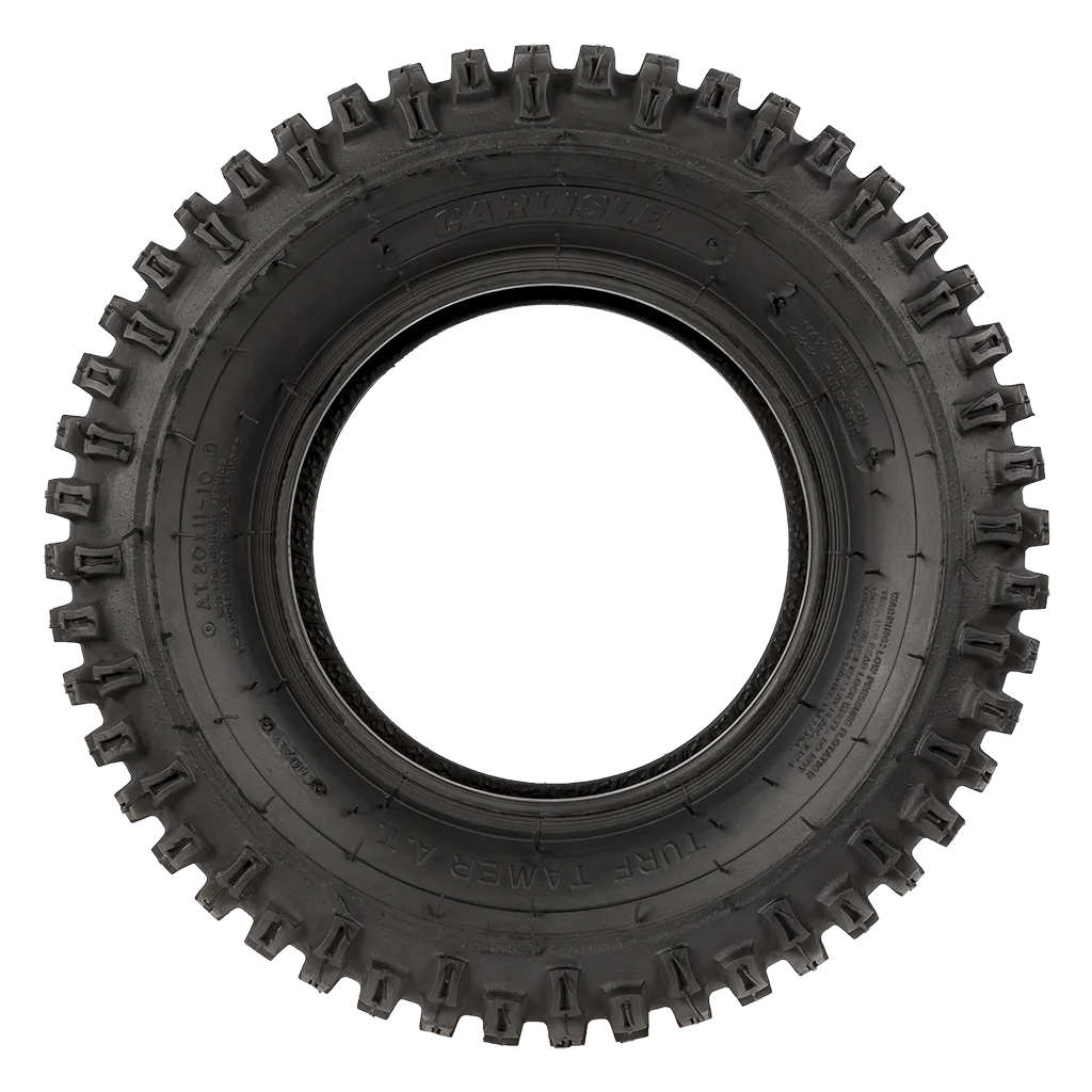 With its lightweight construction, stiff sidewalls and hollowed-out lugs, the Turf Tamer tire provides excellent handling in hard-packed conditions. Formulated for performance, The Turf Tamer tire’s wide profile ensures stability around tight corners and traction for a variety of terrains. Made in the USA.