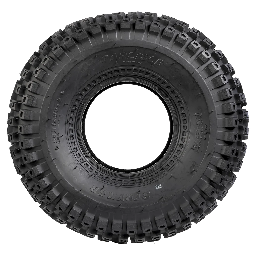The Stryker tire features a unique offset chevron pattern that is self-cleaning with great performance in all terrains. Made in the USA.